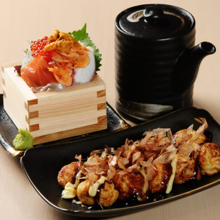 ・食べ放題!自分で焼けるたこ焼き (17種類)・おまかせ5串・和牛ステーキ・贅沢盛り〜ウニとイクラと海の幸〜